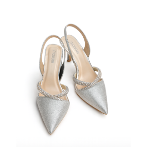 - These elegant white women’s heels feature a glossy finish with a beautifully embellished bow on the front, adding a touch of sparkle and sophistication to any outfit.